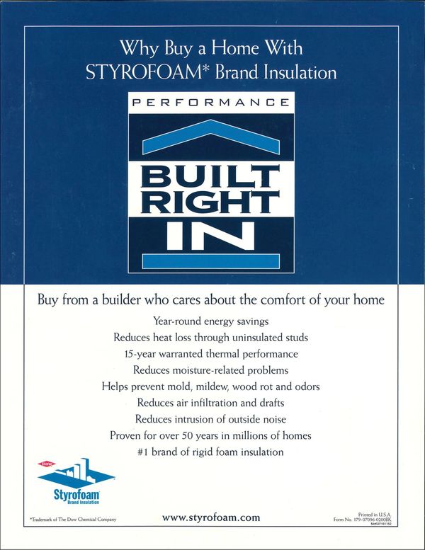 One of the challenges of selling a product that sits behind the vinyl siding is promoting the importance of that product to home buyers. The Built-Right-In program gave home builders a tool that could be used in their model homes to stress the benefits of installing STYROFOAM® Brand Insulation in their builds.